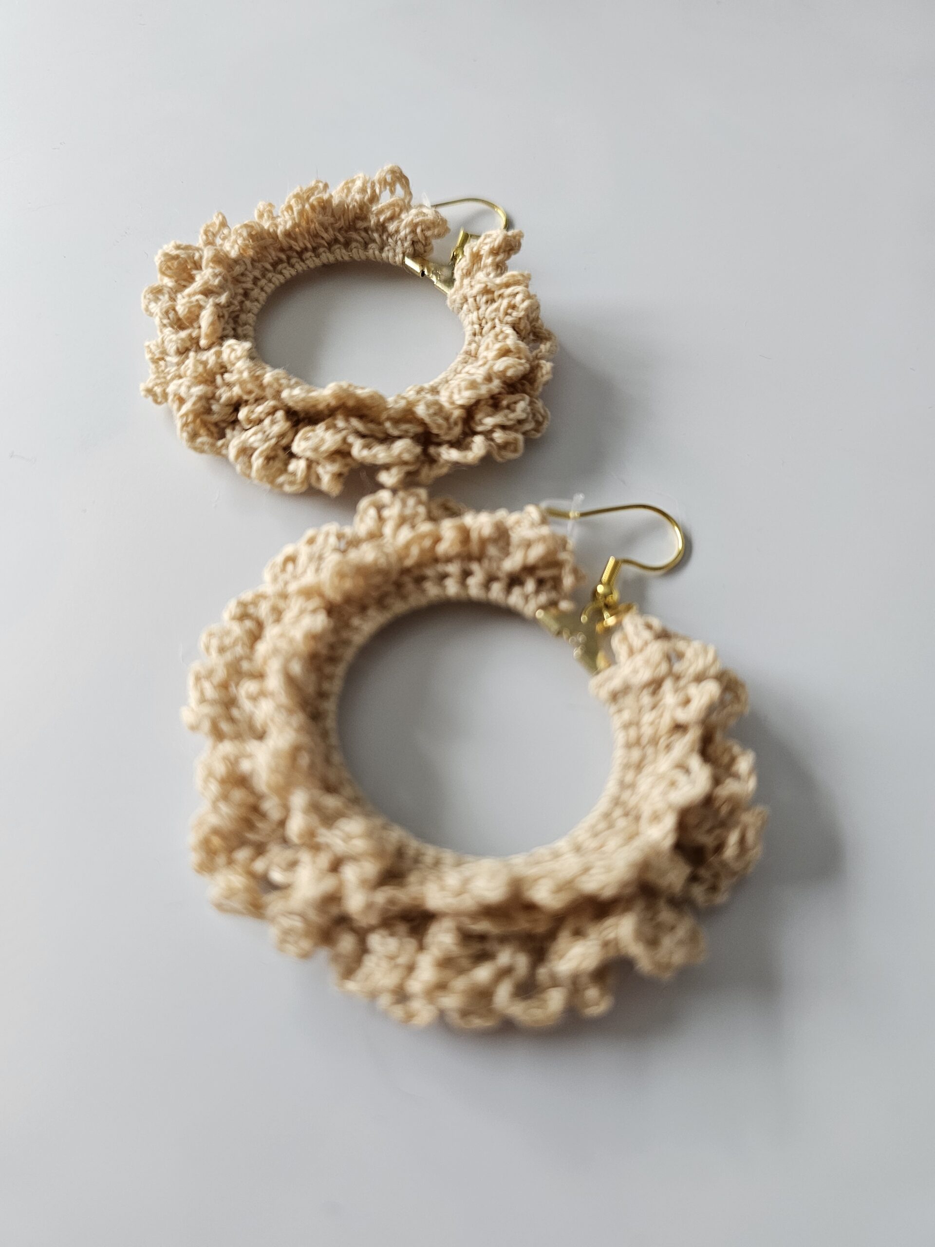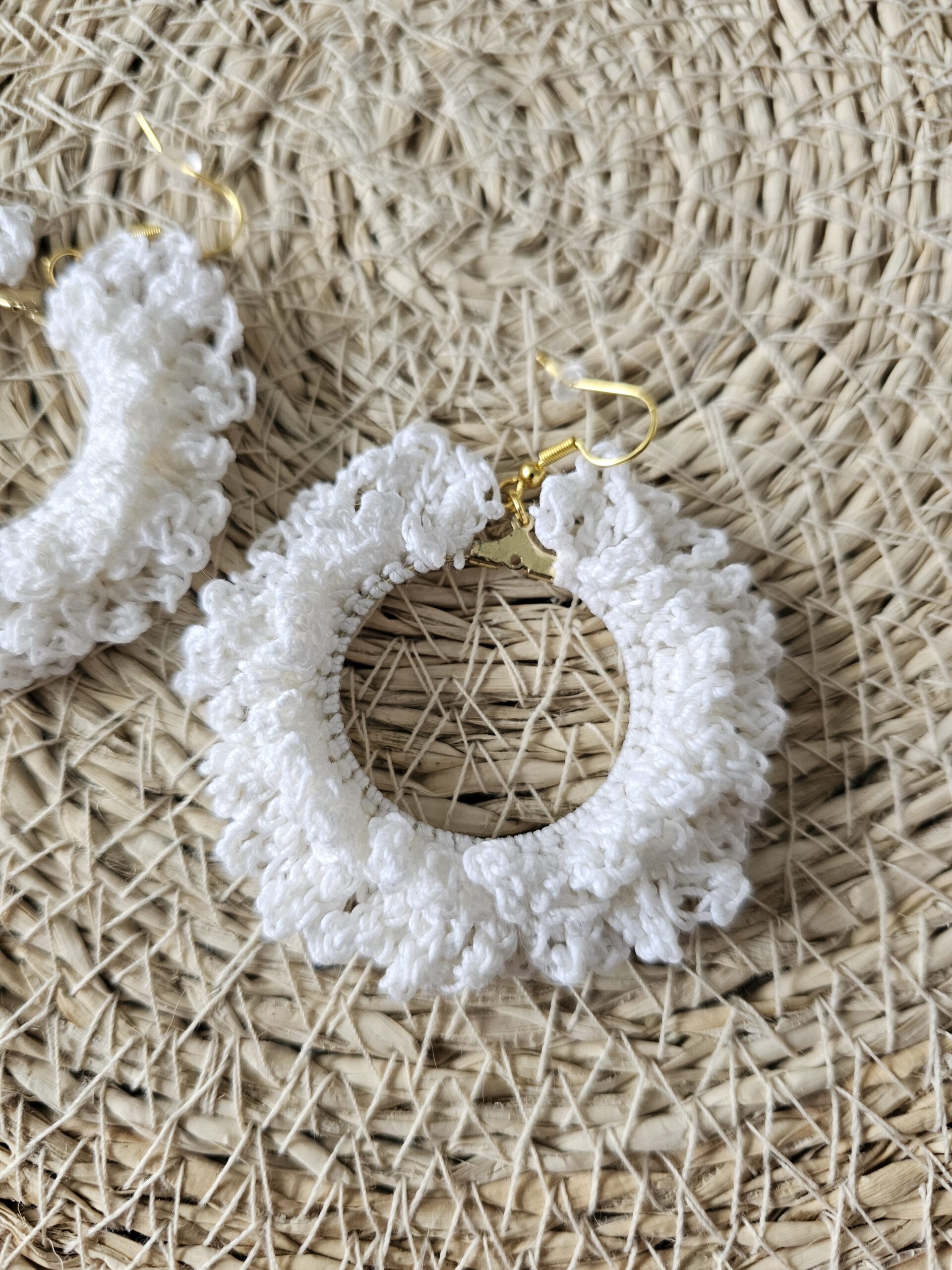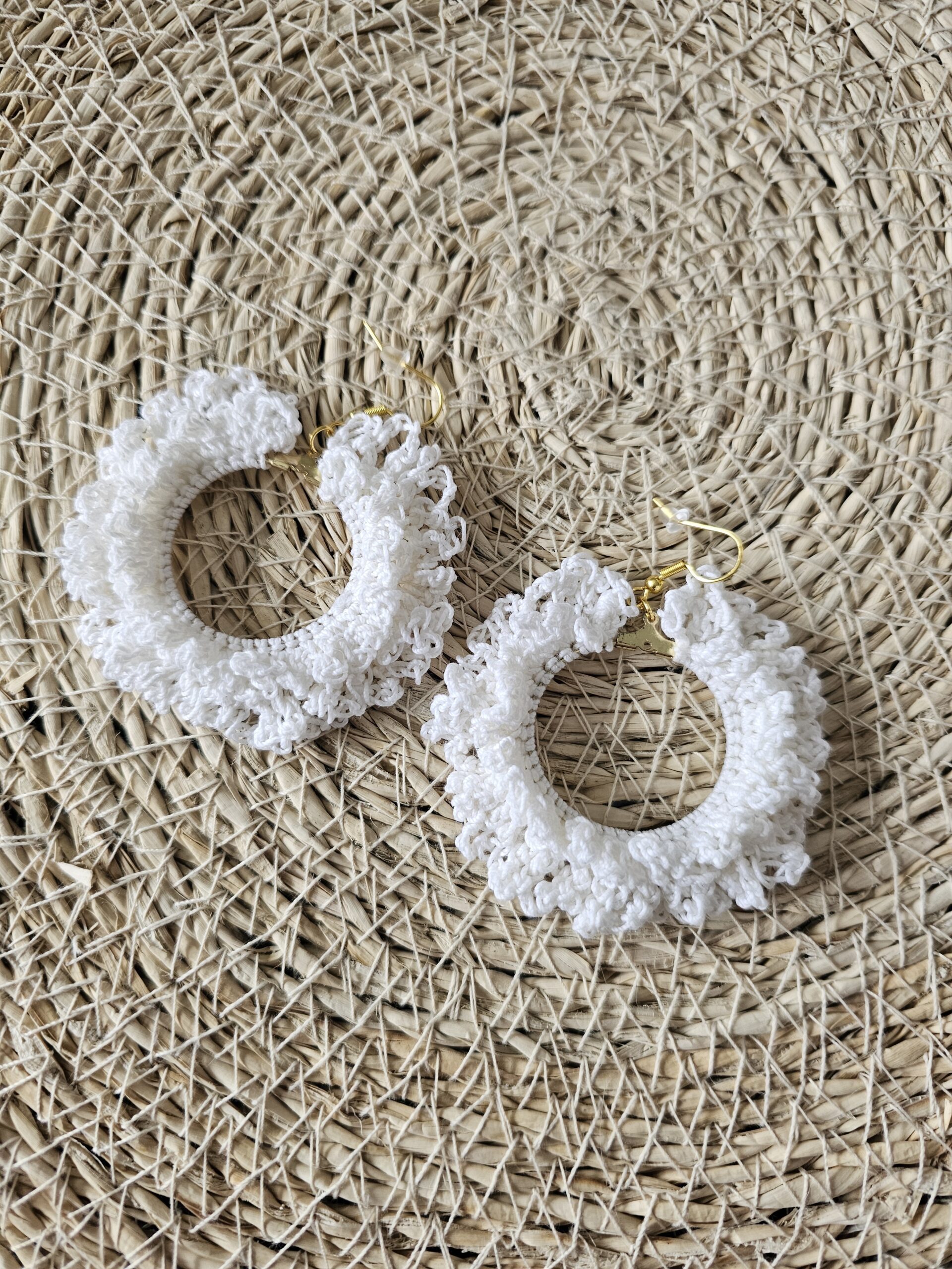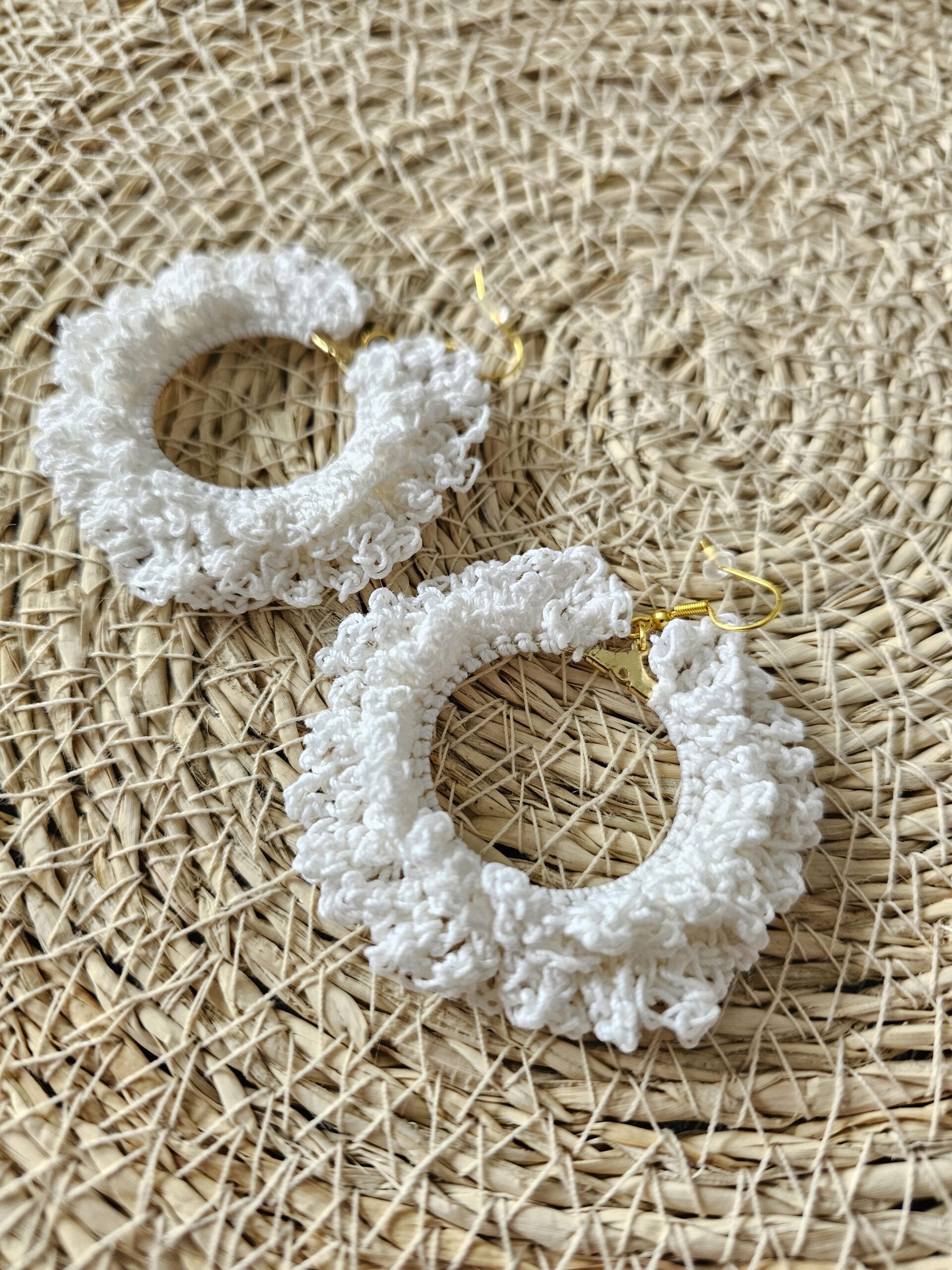 Confectionnées en fil 100% coton, elles sont légères et agréables à porter tout au long de la journée. Les apprêts en acier inoxydable garantissent une excellente durabilité et conviennent aux oreilles sensibles. Chaque paire est soigneusement réalisée pour un rendu unique et artisanal.